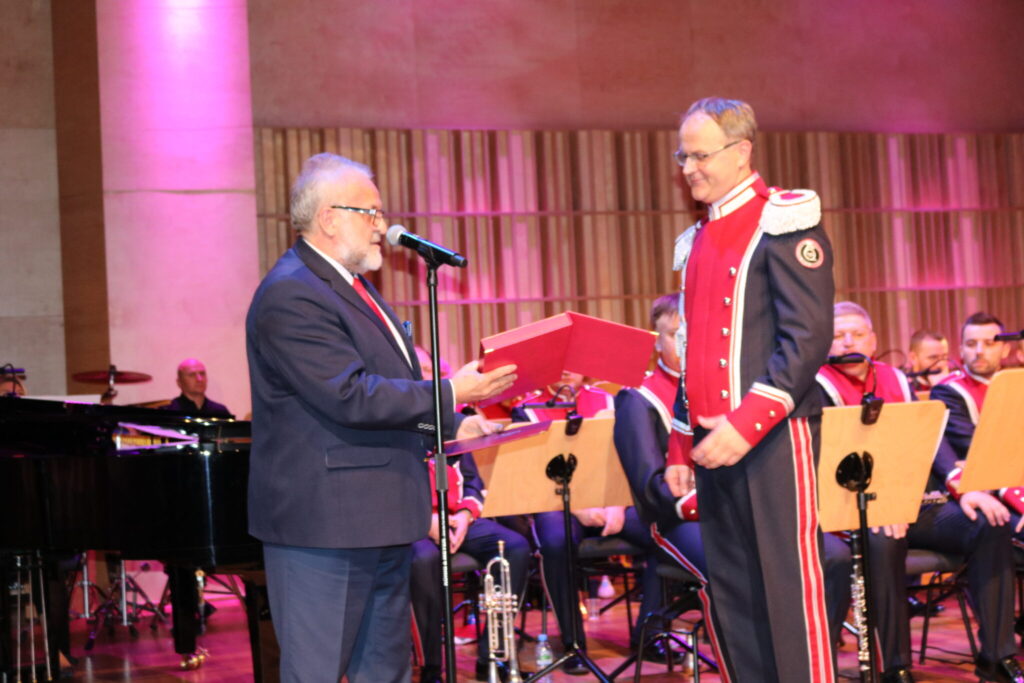 Z okazji Jubileuszu orkiestry Pan Burmistrz Miasta Marcin Jakubowski, przekazał List Gratulacyjny skierowany do dyrygenta Pana Marcina Ślązaka w podziękowaniu za działalność artystyczną nazywając Jubilatkę ambasadorem kultury i piękną wizytówką naszego miasta, który odczytał Wiceburmistrz Miasta Pan Krzysztof Michalik. Następnie głos zabrał, Burmistrz Senior Zbigniew Grzesiak dziękując orkiestrze za to, że tak cudownie szerzy kulturę i ubogaca życie naszym mieszkańcom, przypominając jednocześnie kilka szczegółów z historii jej powstania. Głos zabrał także przewodniczący Rady Miasta Dariusz Kulma, który w kilku słowach podziękował za kształcenie młodych wykonawców, którzy mogą być inspiracją i dążeniem do odkrywania prawdy jak wielką rolę w życiu każdego człowieka odgrywa muzyka i spotkanie z kulturą. Nie zabrakło kwiatów i jubileuszowych prezentów. Dalszą część uroczystości skradła artystka Teatru Buffo Natasza Urbańska, która uświetniła koncert swoją obecnością. Gwiazda wykonała wraz z orkiestrą kilka utworów, a Jej urok sprawił, że goście z zapartym tchem słuchali niepowtarzalnego występu. Dziękując za wspaniały artystyczny wieczór wszystkim, którzy przybyli na ten wyjątkowy jubileusz dyrygent zaprosił na tort. Życzymy kolejnych jubileuszy i wszelkiej pomyślności.
