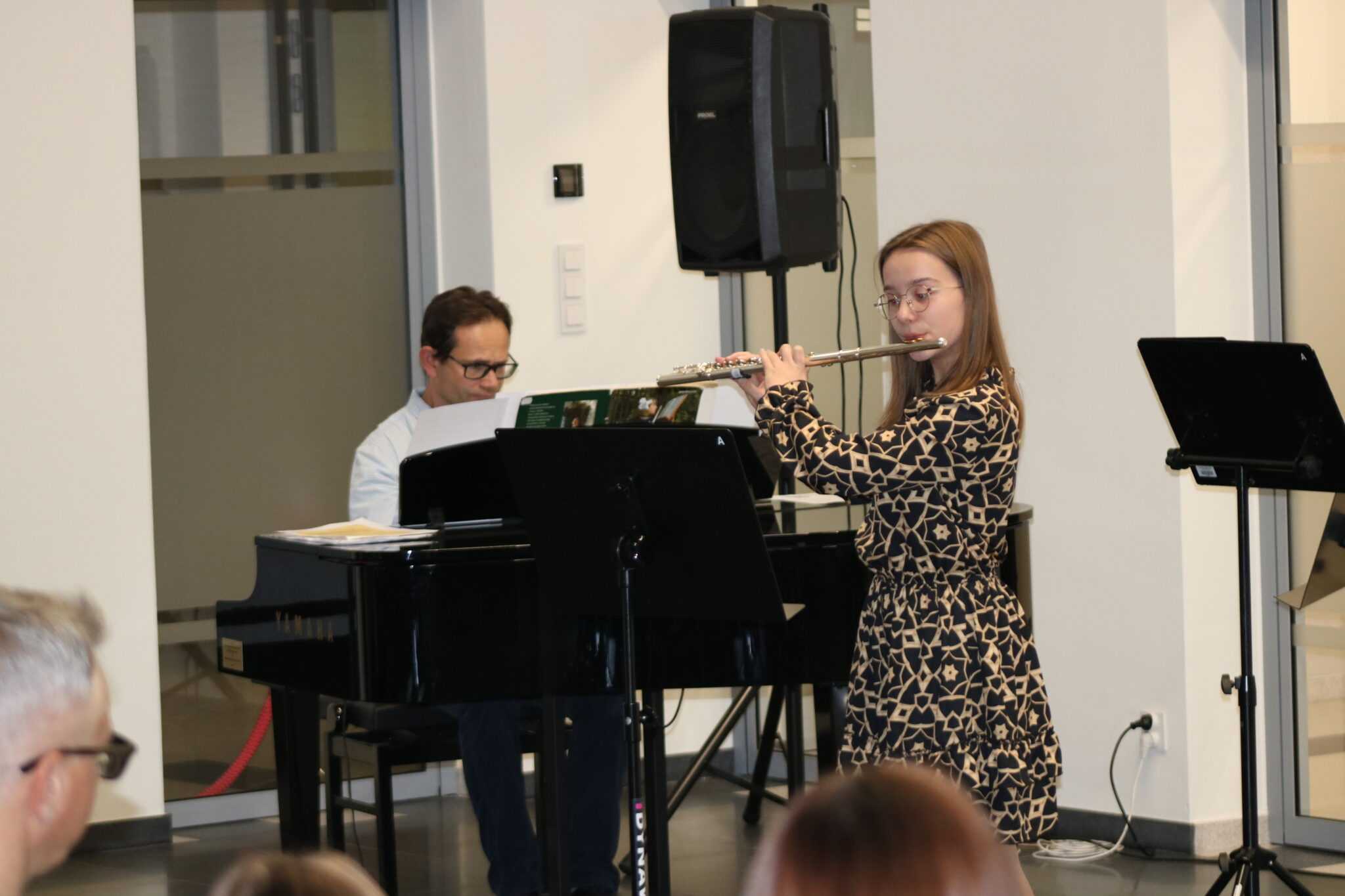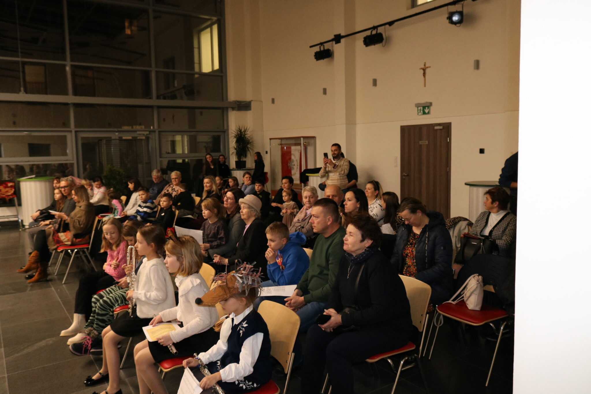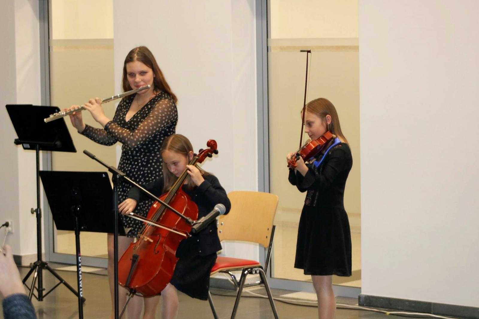 W dniu 22.11.2022 odbyła się audycja klasy fletu pani Beaty Kierzkowskiej pt. “Jesienne pejzaże muzyką fletowa malowane”. Wszyscy goście przybyli na audycję z wielką uwagą i zainteresowaniem słuchali przepięknych wykonań młodych artystek, a każde z nich było nagradzane oklaskami. Tego wieczoru mogliśmy usłyszeć min.: ”Deszczyk”, ”Hallowen Dance” jak również utwory na różne zespoły intrumentalne i wokalno- intrumentalne min.: ”Tosia i liście”, ”Jesienna zabawa”, ”Taniec żyrafy”, ”Kasztany”. Finał audycji to wspólne wykonanie utworu ”Le Grand Sitting Bull”. Było dużo radości, pięknych dźwięków i wspólnego muzykowania. Uczennicom akompaniował pan Jacek Nazarczuk.