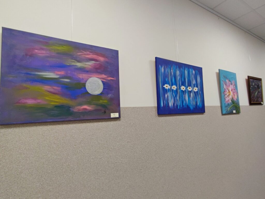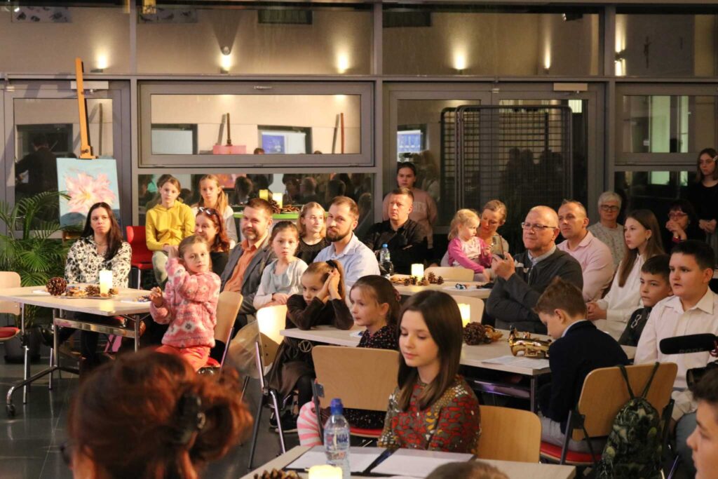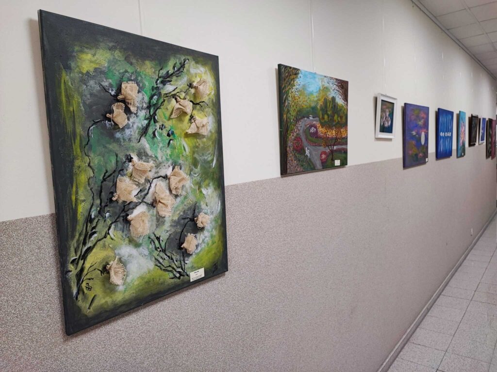 17 listopada 2022 roku w auli naszej szkoły miało miejsce ciekawe wydarzenie. Tego dnia Pani Bożena Plichta, malarka i poetka, zaprezentowała obrazy i wiersze własnego autorstwa. Wernisaż odbywał się w niecodziennym wystroju wnętrza, udekorowanego blaskiem zapalonych świec oraz darami jesieni i przede wszystkim obrazami. Pani Bożena działalność artystyczną traktuje jako życiową pasję, a zaprezentowany dorobek okazał się imponujący. Przedstawiła czternaście obrazów o wymownych tytułach: Park jesienią, Stokrotki na wietrze, Powiew wiosny, Pędzące auto, Tulipany, Miasto nocą, Zimny maj, Kwiaty w lipcowym słońcu, Ukraina, Widok z tarasu na Morze Egejskie, Amarylis, Begonie, Niebieska łąka, Zaświaty.