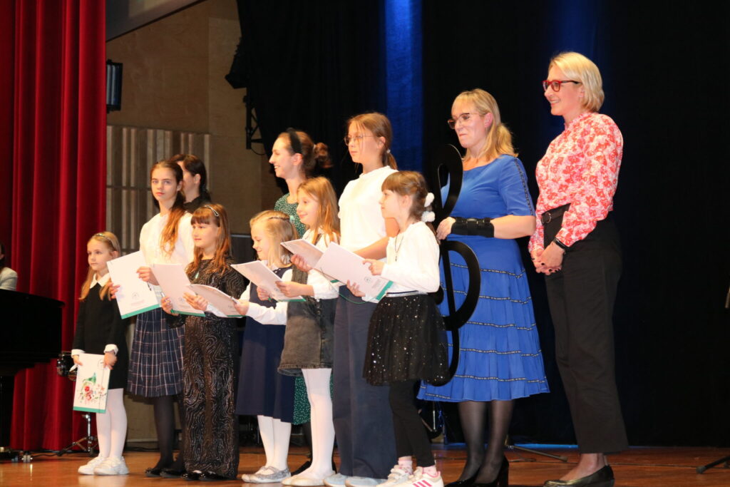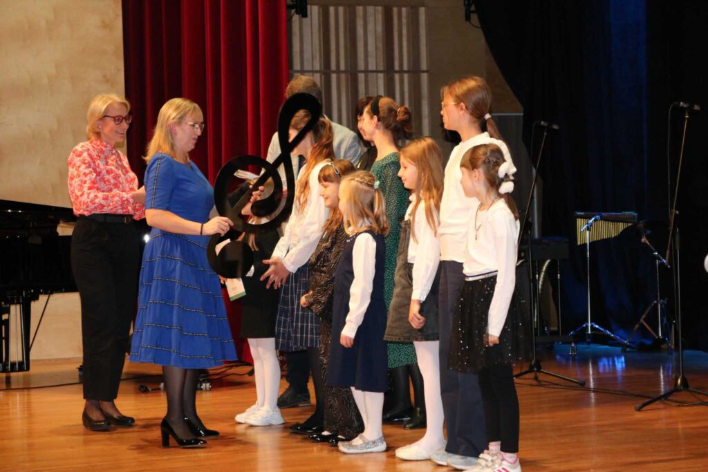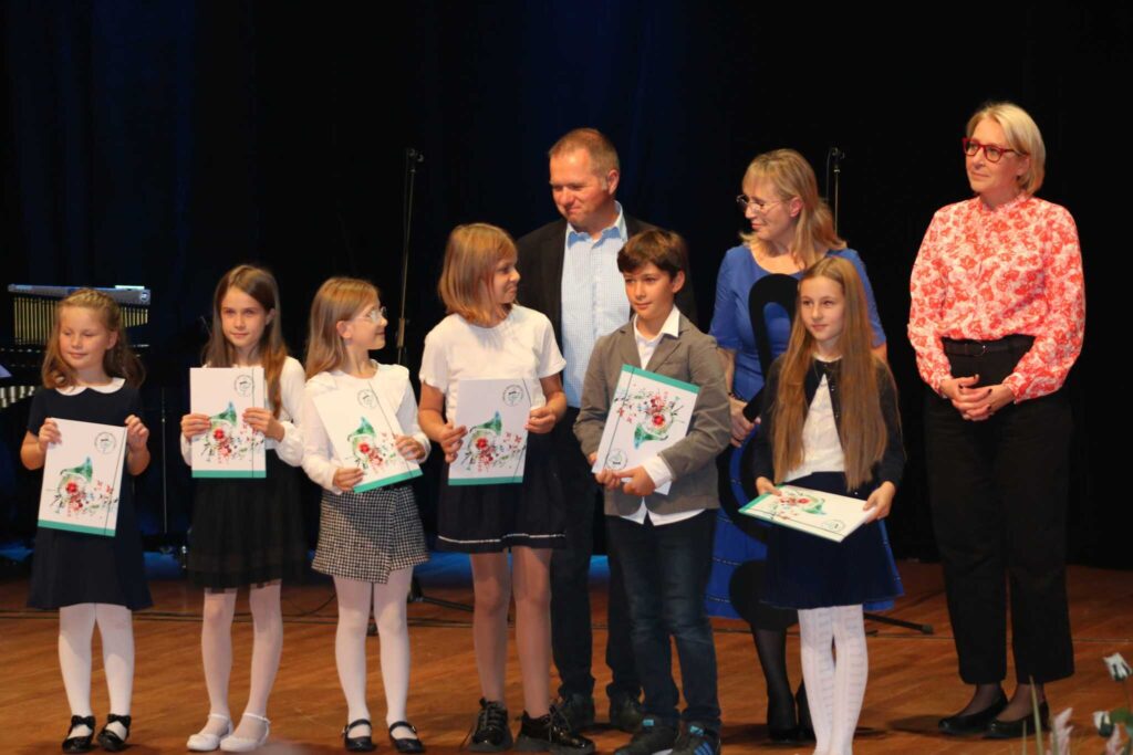 16 października 2023 o godz. 18.00 w sali koncertowej Miejskiej Szkoły Artystycznej w Mińsku Mazowieckim miała miejsce wyjątkowa uroczystość. Odbyło się pasowanie uczniów klas pierwszych, podczas którego młodzi artyści zobowiązali się do rzetelnej nauki i dbania o instrumenty. Uroczystość rozpoczęła się od części oficjalnej – wprowadzenia sztandaru, odśpiewaniu hymnu państwowego oraz hymnu szkoły przez chór szkolny pod batutą p. Tomasza Zalewskiego oraz licznie zgromadzonych rodziców, nauczycieli i zaproszonych gości. Następnie prowadząca uroczystość pani Monika Kuchta-Walos sprawdziła poziom wiedzy uczniów klas pierwszych zadając im zagadki muzyczne. Pierwszaki pomyślnie odpowiedziały na pytania, wykonały piosenkę, a następnie złożyły uroczyste ślubowanie. Pani dyrektor wraz z panią wiceburmistrz Katarzyną Łaziuk dokonały pasowania uczniów przy pomocy atrybutu muzycznego – klucza wiolinowego, przyjmując ich tym samym do społeczności szkolnej. Nowoprzyjęci uczniowie otrzymali dyplom oraz drobiazgi z logo szkoły na pamiątkę tego wydarzenia ufundowane przez Radę Rodziców. W sumie naukę w klasach pierwszych w roku szkolnym 2023/2024 rozpoczęło 50 uczniów. W drugiej części uroczystości królowała muzyka przygotowana przez starszych kolegów i koleżanki. Wykonali oni różne utwory zarówno solo jak i w zespołach. Wystąpili instrumentaliści oraz klasa rytmiki p. Krystyny Płochockiej. Życzymy wytrwałości i wielu sukcesów w edukacji artystycznej. Mamy nadzieję, że ten dzień na długo pozostanie w pamięci uczniów rozpoczynających w naszej szkole przygodę z muzyką.