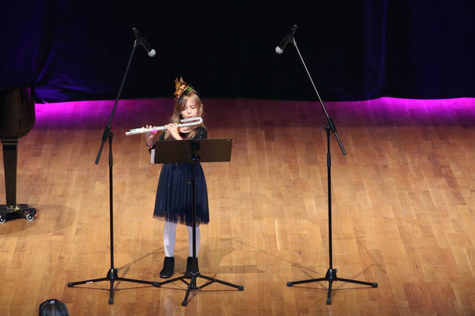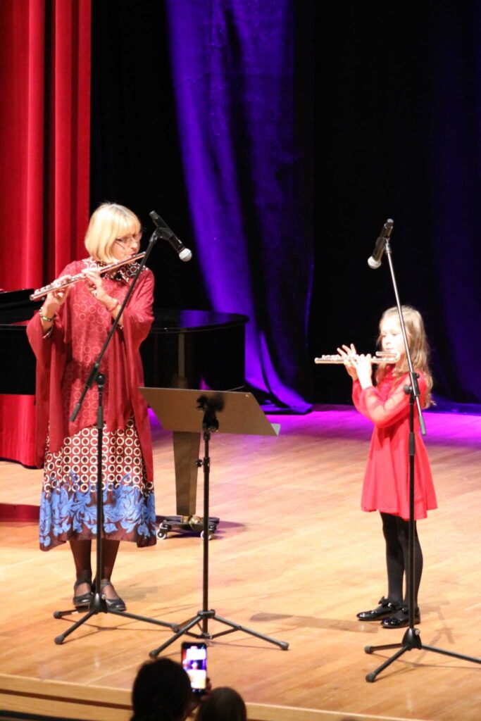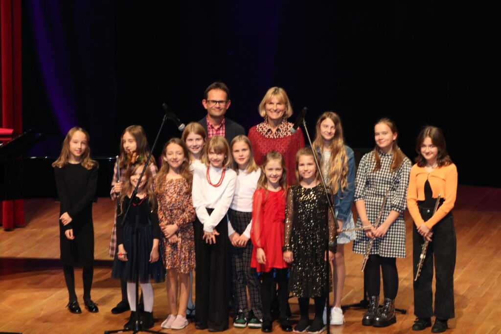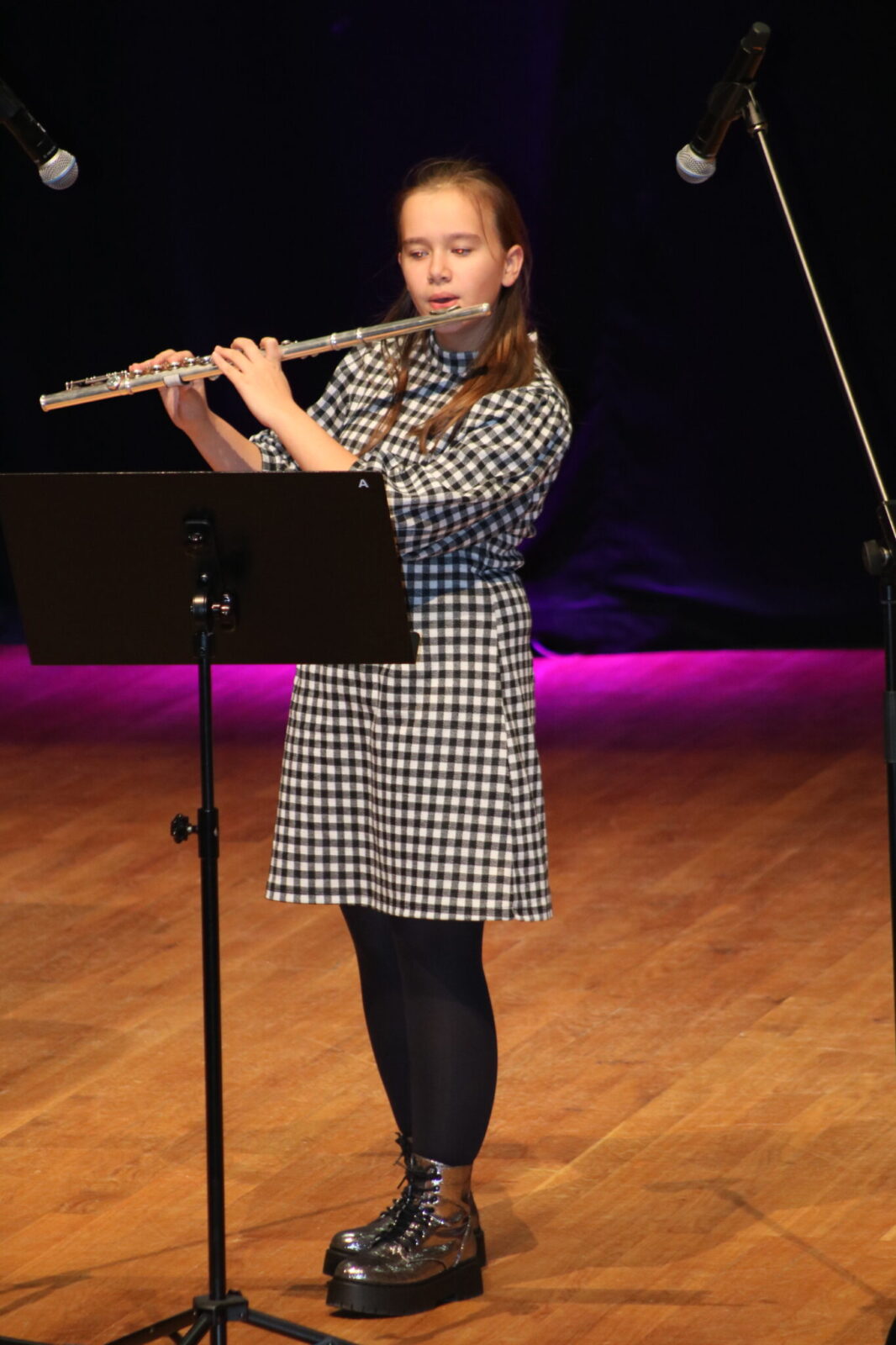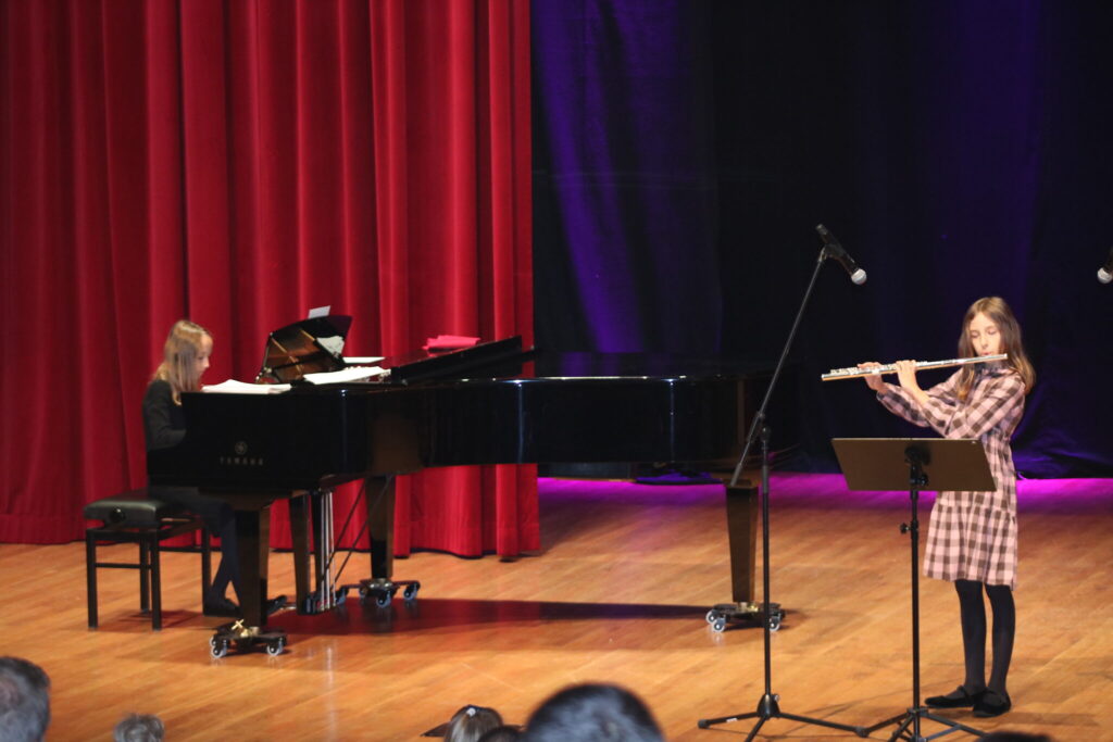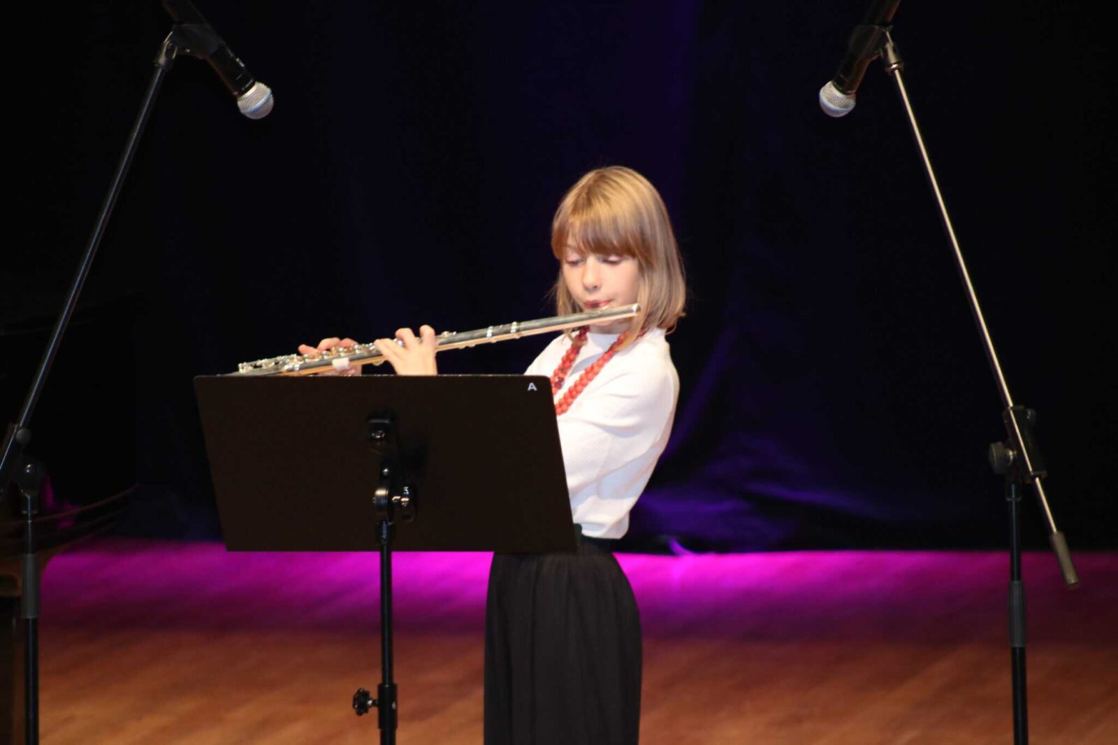 i kasztanowe nutki”. Wystąpiły ucznennice klasy fletu p. Beaty Kierzkowskiej i klasy fortepianu p. Anny Kornackiej. Było wesoło, kolorowo i jesiennie. Utwory nawiązywały do tematu audycji. Uczennicom akompaniował p. Jacek Nazarczuk. Były również zespoły: duety i tria. Na zakończenie wszyscy wykonali kompozycję F.Rybickiego -Jarzębinowa piosenka. Gościnnie wystąpiła flecistka z orkiestry Sinfonia Varsovia – Anna Jasińska, która wykonała utwory: J.S.Bacha, W.A.Mozarta, E.Bozzy. Wykonawcom dziękujemy za piękne przygotowanie, a publiczności za udział w audycji.