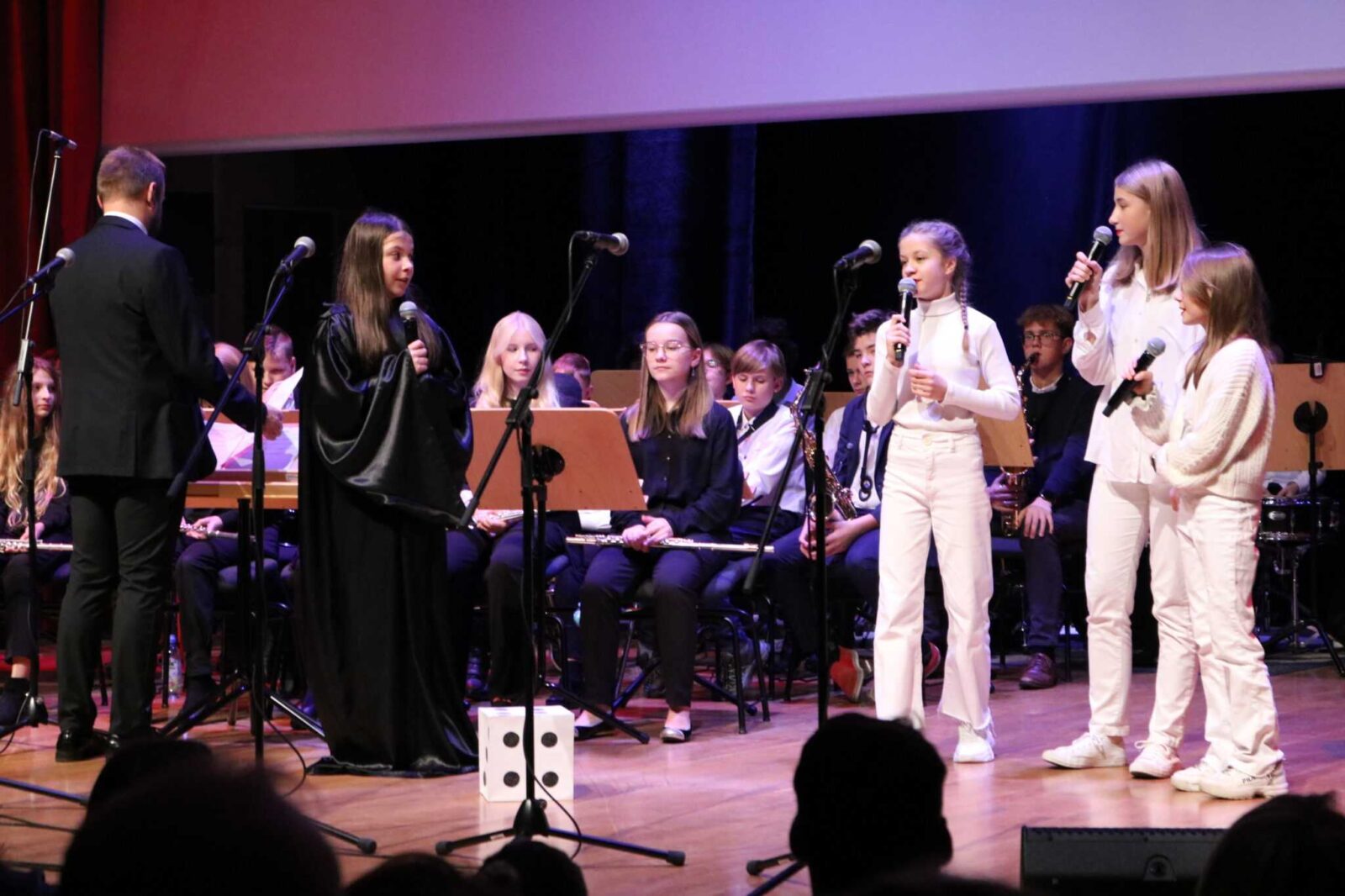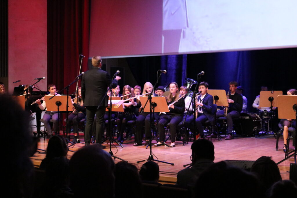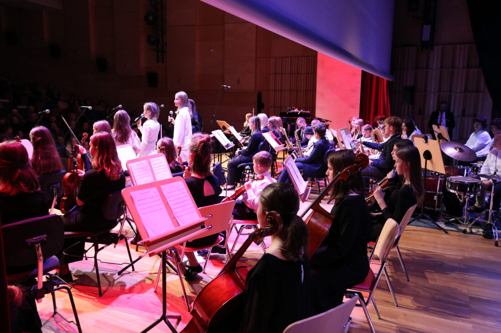 11 listopada 2023 roku w sali koncertowej szkoły odbył się spektakl teatralno – muzyczny pt. „Wygrać wolność”, którym nasza szkoła włączyła się w miejskie obchody 105 rocznicy odzyskania przez Polskę Niepodległości. Uczniowie, absolwenci i pedagodzy przedstawili trudną i długą drogę do wolności, jaką Polska przeszła, aby dziś móc docenić życie w wolnym kraju.To niecodzienne widowisko miało charakter swoistej podróży przez ważne dla polskiej historii daty zaczynając od 1918 roku. Każda przedstawiana przez bohaterów spektaklu opowieść była wzbogacona prezentacją filmową oraz utworami muzycznymi charakterystycznymi dla wybranego okresu historii naszej Ojczyzny. Wiele faktów z wydarzeń tamtych dni dodatkowo przybliżyły licznie zgromadzonej publiczności dramatyczną i pełną poświęceń drogę do wolności. W spektaklu udział wzięli uczniowie z klasy kameralistyki wokalnej i klasy teatralnej p. Justyny Kowyni, szkolna orkiestra smyczkowa przygotowana przez p. Piotra Grabowicza oraz szkolna orkiestra dęta pod kierunkiem p. Pawła Szeląga, przy fortepianie akompaniowała p. Joanna Nowik. Pomysłodawczynią i reżyserem przedsięwzięcia była p. Justyna Kowynia. Spektakl pozostawił w słuchaczach wiele mocnych wrażeń, wspomnień i wzruszeń.