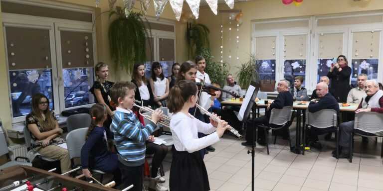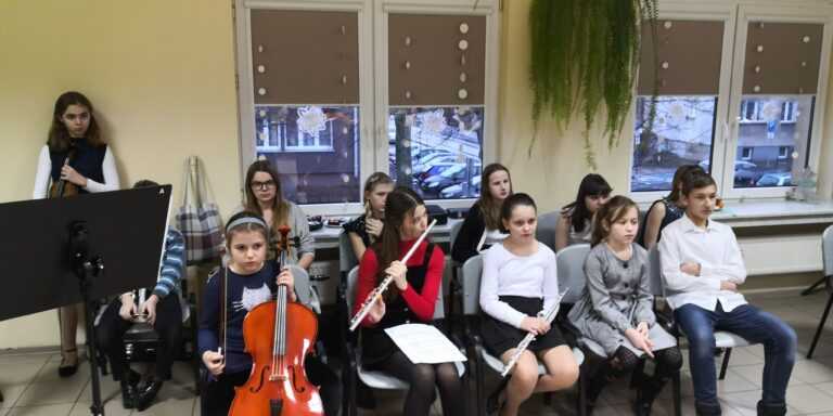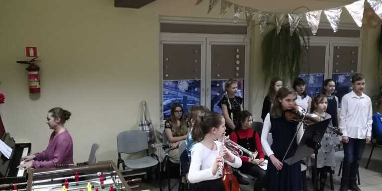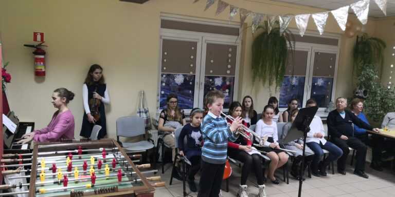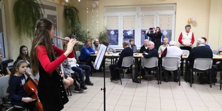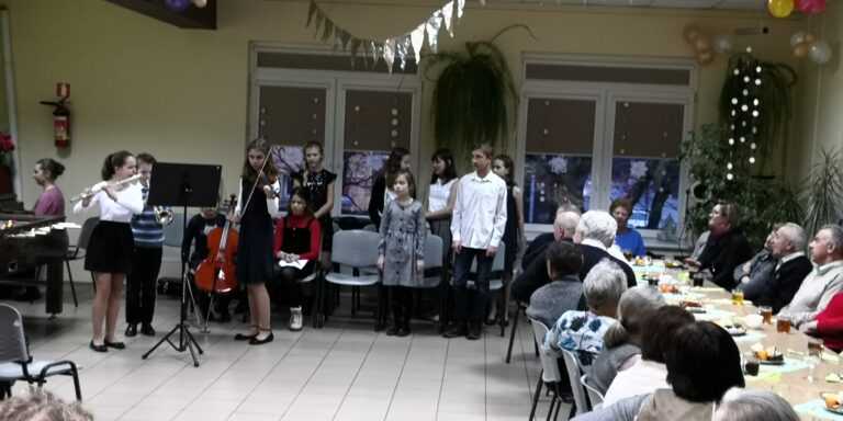 Czas śpiewania pieśni bożonarodzeniowych w polskiej tradycji trwa aż do 2 lutego, więc choć już Święta daleko za nami o kolędach pamiętamy i kolędujemy dla mieszkańców Mińska Mazowieckiego. 30 stycznia uczniowie Miejskiej Szkoły Artystycznej rozpoczęli właśnie takim koncertem spotkanie noworoczne Seniorów. Młodzi artyści wykonali tradycyjne kolędy – “Wśród nocnej ciszy”, “Bóg się rodzi”, “przybieżeli do Betlejem”, “Dzisiaj w Betlejem” i “Gdy śliczna Panna” prezentując brzmienia takich instrumentów jak: klarnet (Oliwia Jachimowicz), trąbka (Piotr Mazaj) , wiolonczela (Barbara Kuza) i flet (Aleksandra Kruszewska). Ponadto – po wykonaniu tematycznego utworu fortepianowego “Noworoczny zegar” (Maksymilian Abramowski) – uczniowie złożyli seniorom muzyczne życzenia w oparciu o piosenkę zespołu Arka Noego: “Życzenia”. Tutaj zaprezentował się zespół instrumentalny: trąbka (Piotr Mazaj), flet (Julia Bachleda) i skrzypce (Edyta Mazaj) oraz zespół wokalny złożony z uczniów klasy pierwszej cyklu czteroletniego. Nie zabrakło także wspólnego śpiewu z Seniorami. Występ Uczniów Seniorzy przyjęli ciepło i słuchali z zainteresowaniem, wyrażając również nadzieję, że usłyszą ich ponownie. Występujących uczniów przygotowali nauczyciele: Janusz Komuda, Joanna Nowik, Ewa Szymańska, Beata Kierzkowska, Wojciech Ziółkowski i Anna Mazaj.