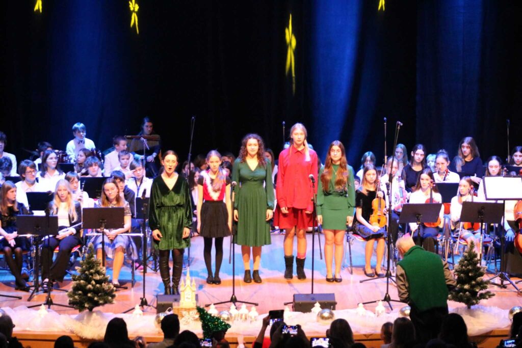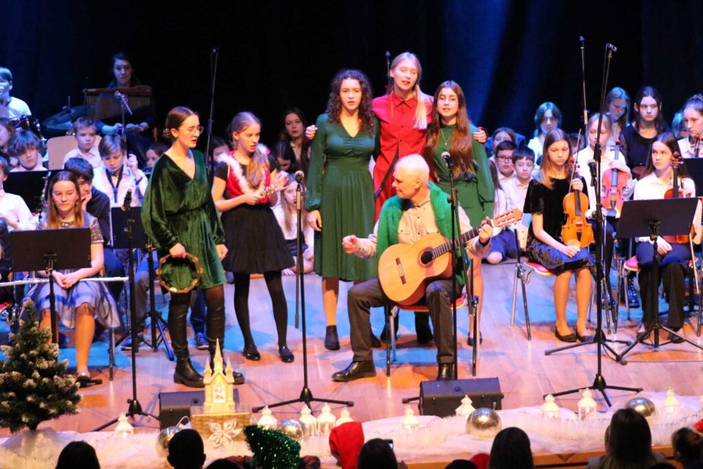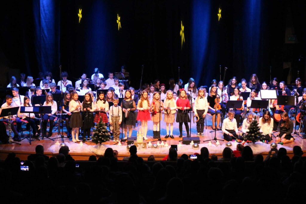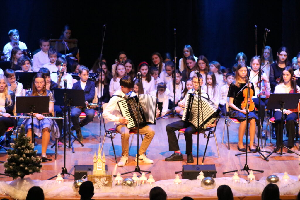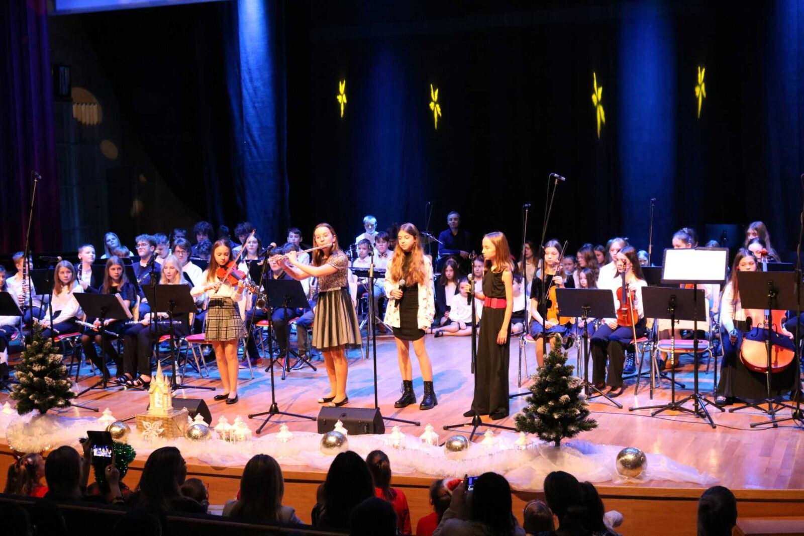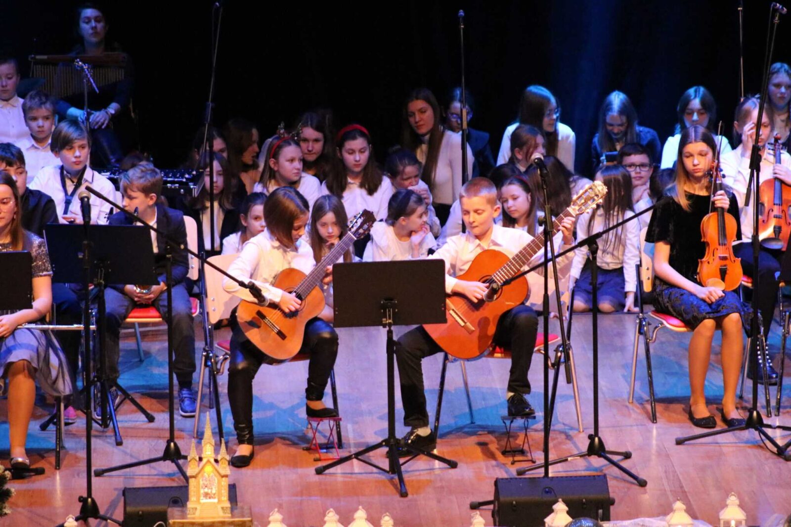 Klasa fortepianu, skrzypiec i fletu na szkolnej scenie