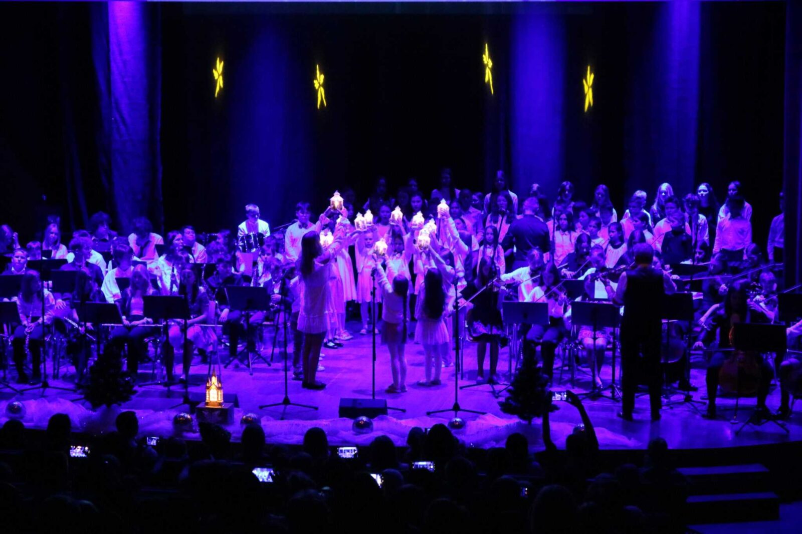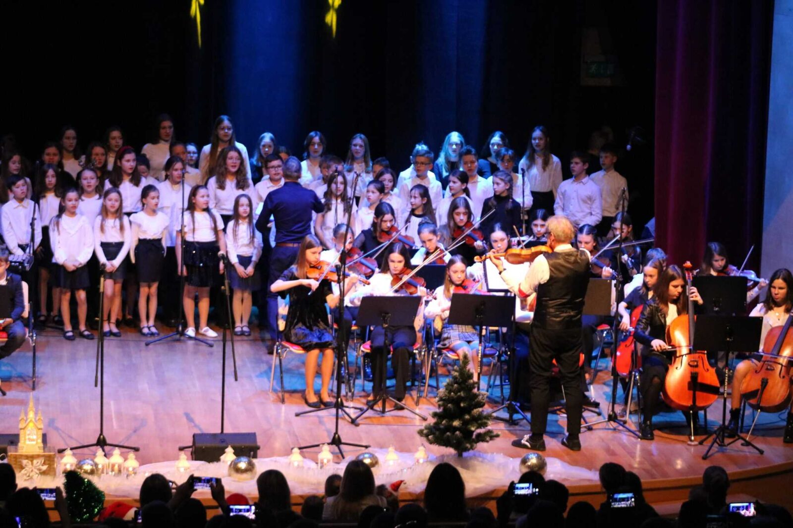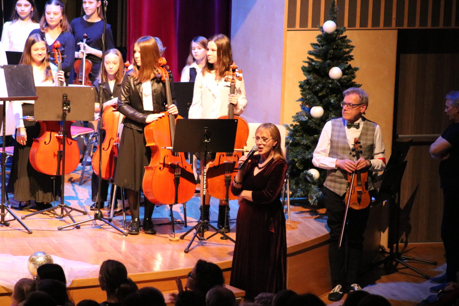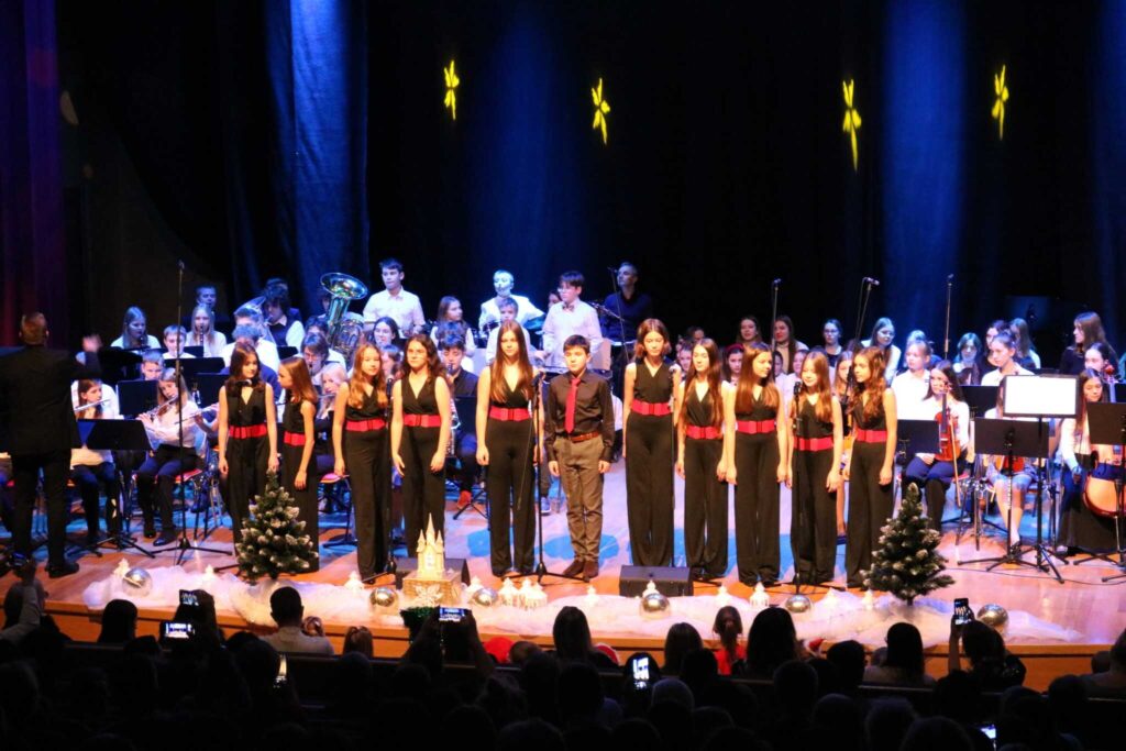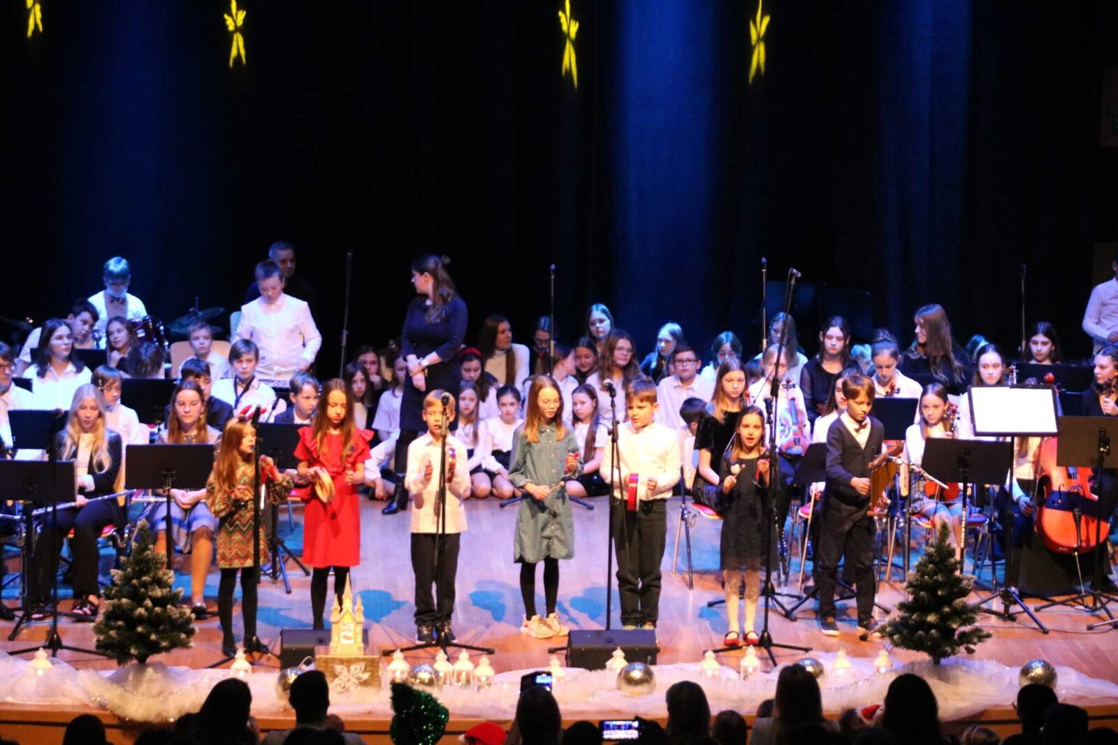 Klasa fortepianu, skrzypiec i fletu na szkolnej scenie