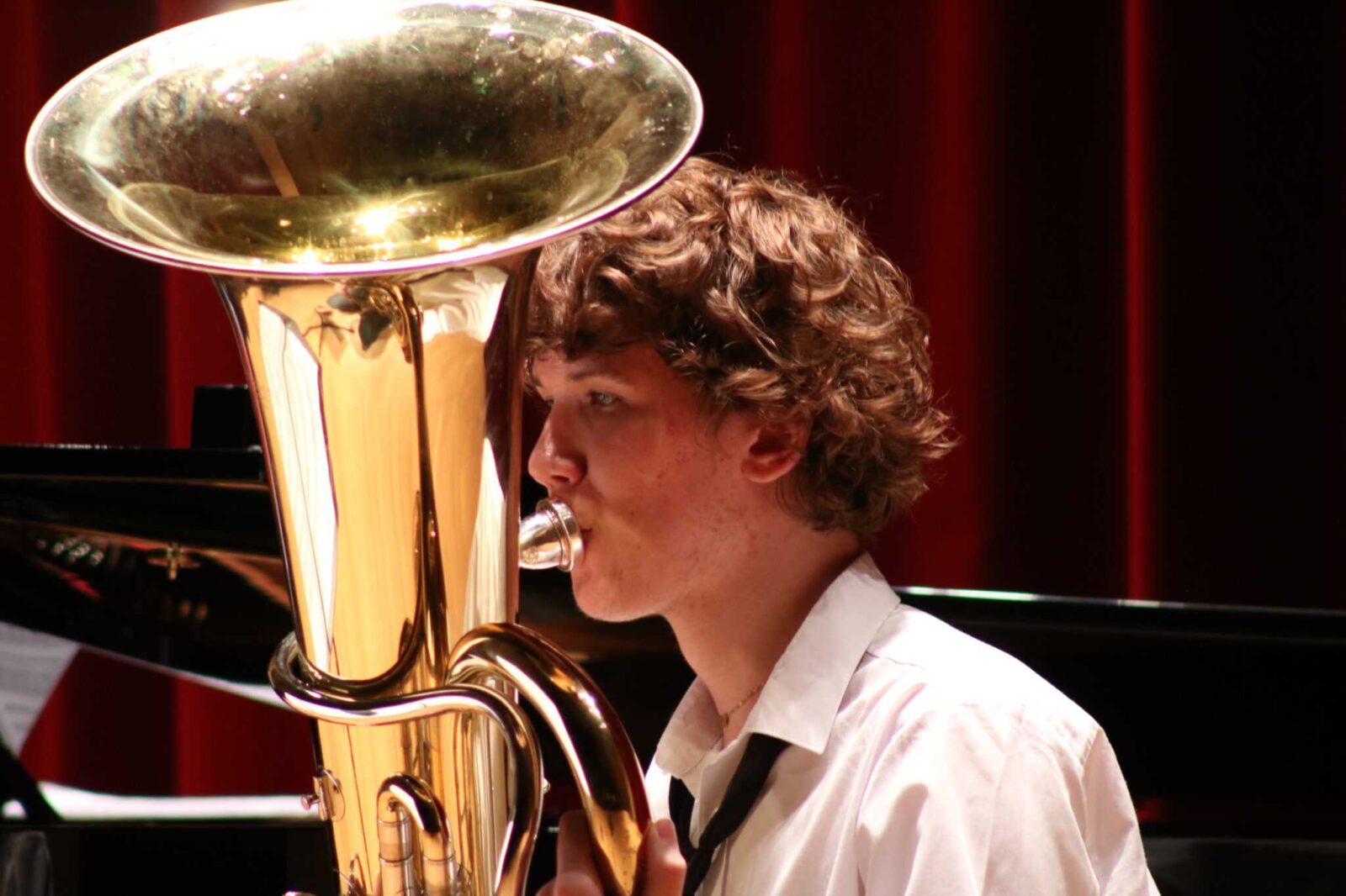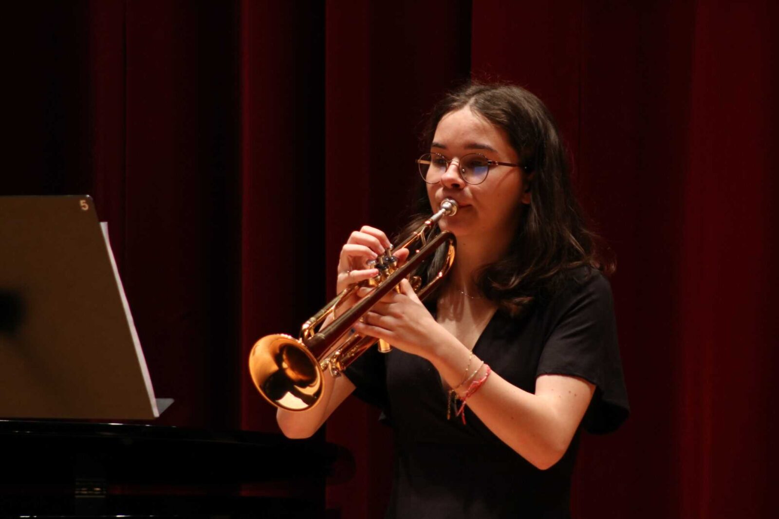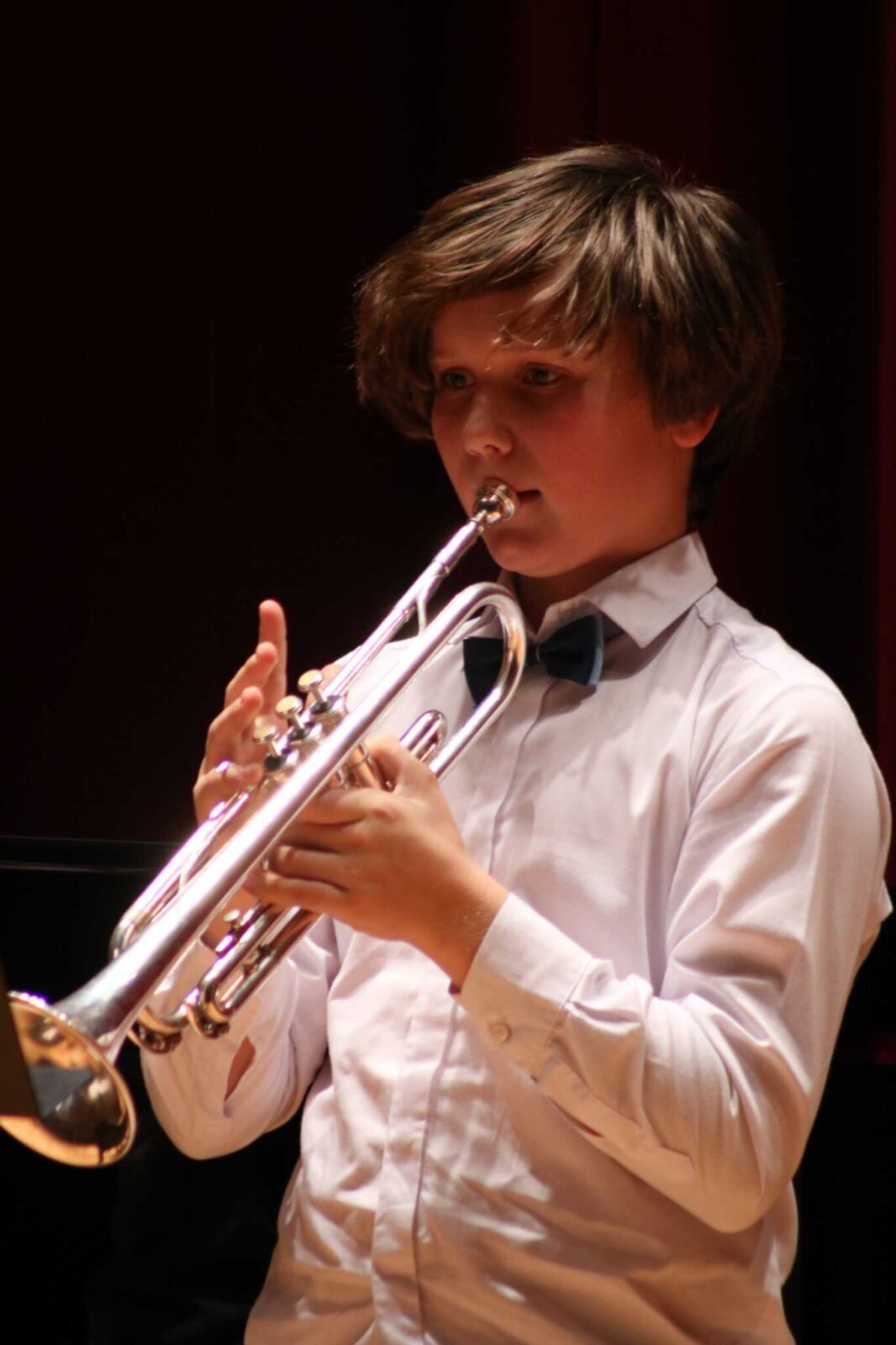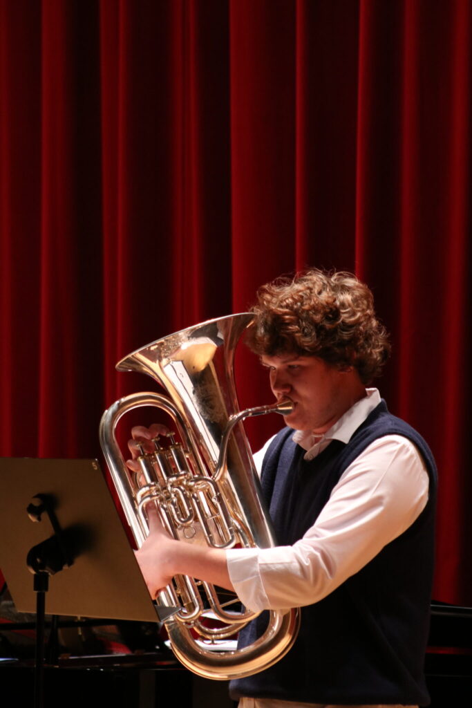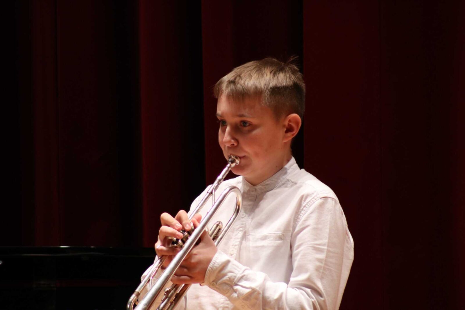 W poniedziałek 8 stycznia na scenie sali koncertowej naszej szkoły można było usłyszeć młodych artystów z klasy trąbki p. Wojciecha Ziółkowskiego i klasy puzonu i tuby p. Arkadiusza Mizdalskiego. Była to audycja podsumowująca pracę uczniów w I semestrze. Tego wieczoru można było usłyszeć utwory z różnych epok d baroku do muzyki współczesnej. Uczniowie wystąpili solo, z towarzyszeniem fortepianu, a nawet był też jeden duet uczeń i nauczyciel. Tradycją audycji tych dwóch klas jest to, że oprócz uczniów biorą w niej udział również nauczyciele więc i oni, dając przykład swoim podopiecznym, też przygotowali swoje utwory. Wśród publiczności były przede wszystkim rodziny uczniów i znajomi ale można też było zobaczyć uczniów z innych klas naszej szkoły, którzy z zaciekawieniem przyszli posłuchać pięknych wykonań. Na fortepianie akompaniowały p. Anna Kornacka i p. Tatiana Żarek.