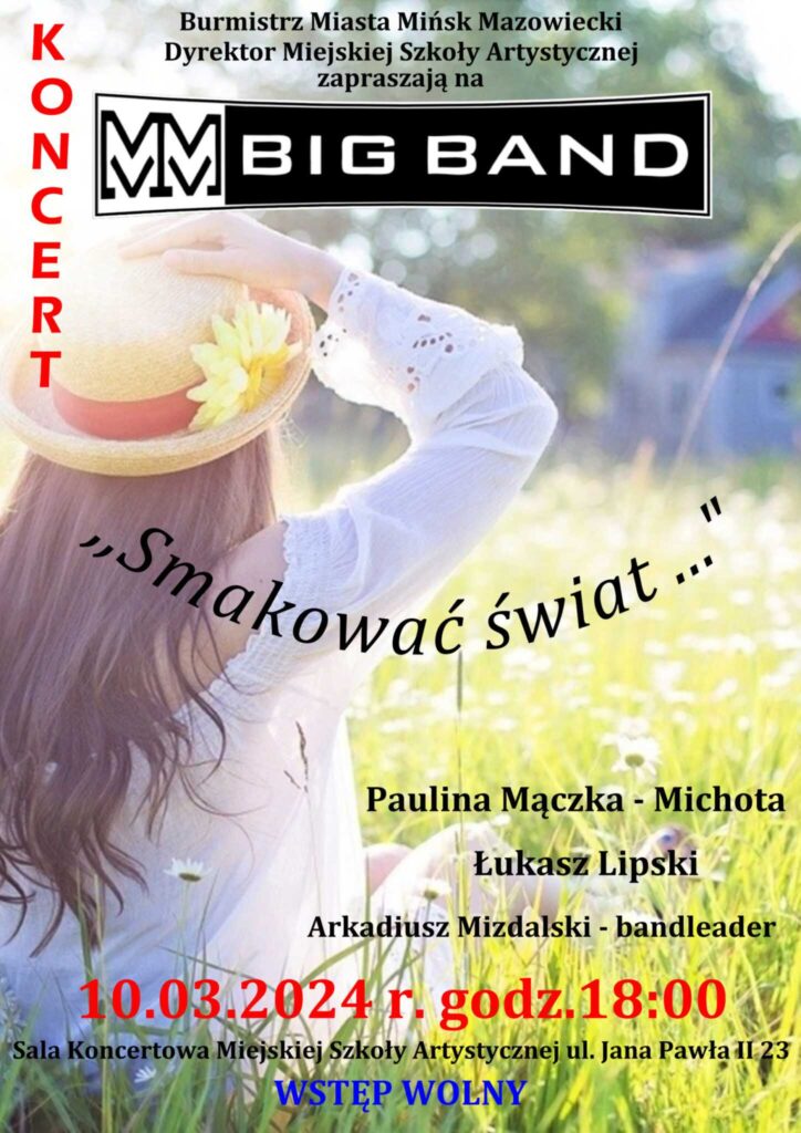 W minioną niedzielę 10 marca na scenie sali koncertowej naszej szkoły odbył się koncert MM Big Bandu z okazji Dnia Kobiet pt.”Smakować świat…”. Zgromadzona publiczność mogła zasmakować i rozkoszować się pięknymi dźwiękami i tekstami piosenek przygotowanymi specjalnie na ten wieczór. Podczas prawie półtorej godzinnego koncertu zespół wykonał największe przeboje z repertuaru takich artystów jak Ewa Bem, Andrzeja Zaucha czy Zbigniew Wodecki, podczas których publiczność śpiewała wspólnie z zespołem, a nawet stworzyła chór do jednego z utworów. Jak przystało na big band nie obyło się również bez popisowych utworów instrumentalnych podczas których artyści mogli zaprezentować swoje wirtuozerskie umiejętności. Solistami tego wieczoru byli Paulina Mączka – Michota oraz Łukasz Lipski. Całość przygotował i poprowadził bandleader zespołu Arkadiusz Mizdalski.